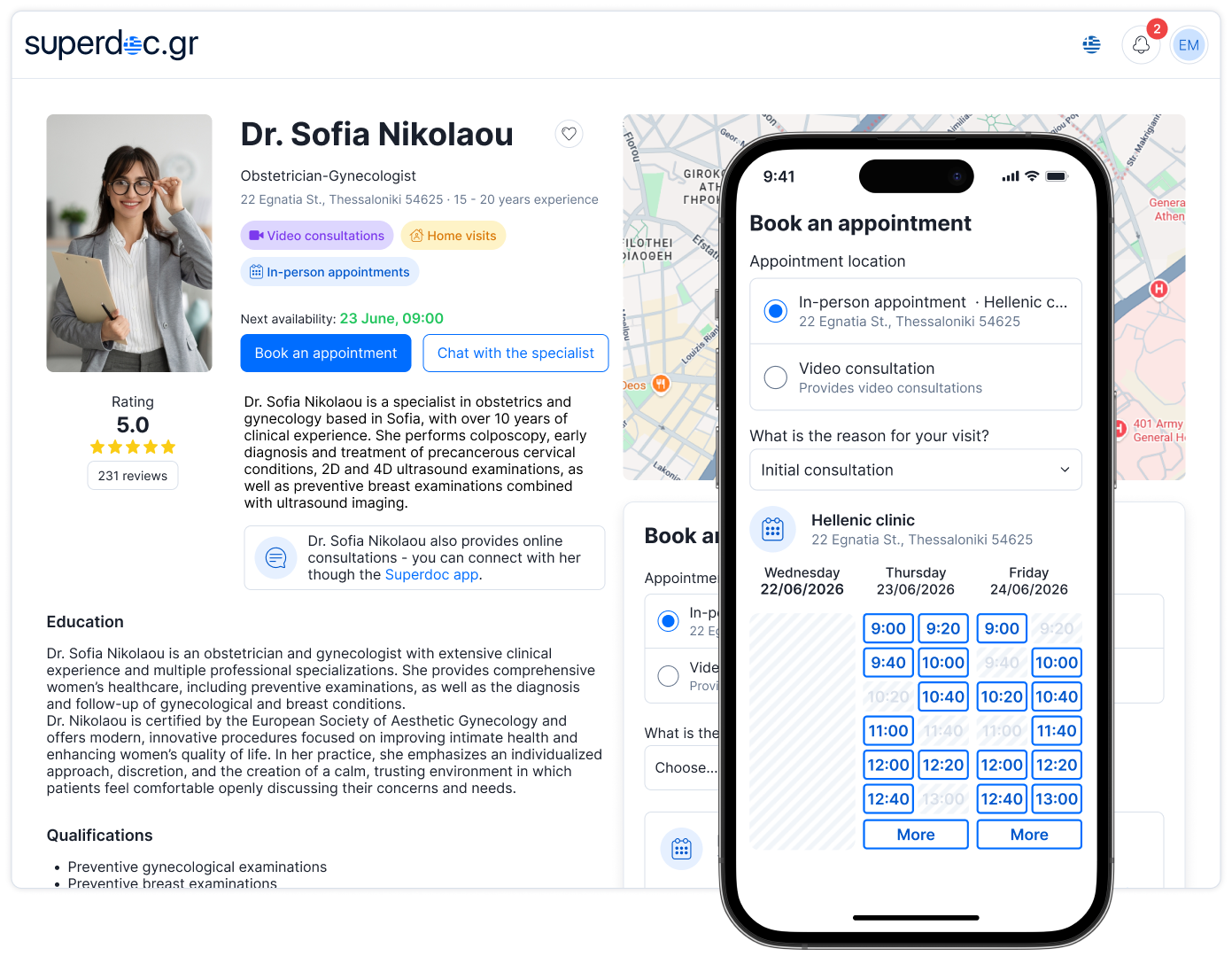 Superdoc is an online platform for booking medical appointments, offering patients the opportunity to view the profiles of doctors from various specialties, choose the right doctor at the most convenient time and place for them, and book an appointment online!